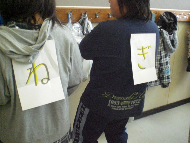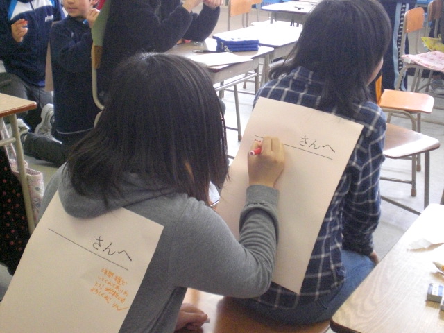 先生の背中に貼っている画用紙に