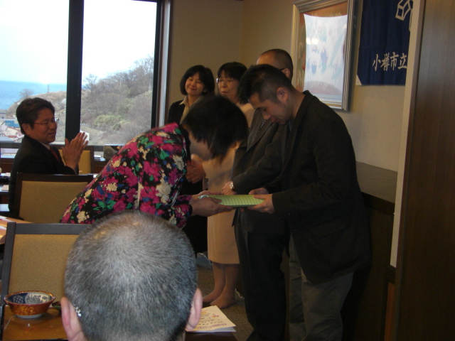 転出された先生に記念品を