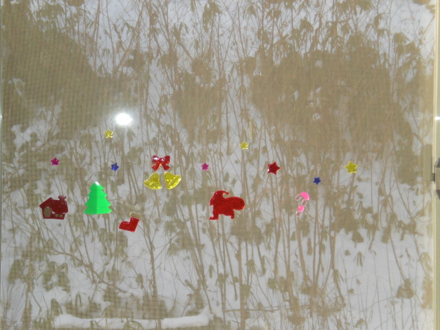 校長室の窓がクリスマスバージョンになっていました