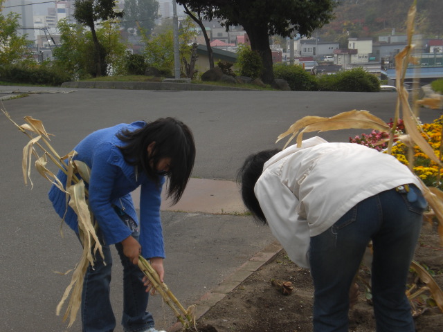 終わってから、PTAの花壇の朝顔の種を