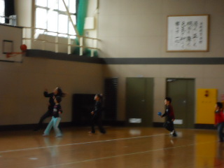 体育館でバドミントン、バスケットボール、